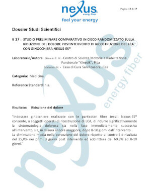 Studio: Dipartimento di medicina e traumatologia dello Sport di Lucca – “Effetti del tessuto Nexus-ES® sulla idratazione, sulla prestazione atletica e sul DOMS (dolore muscolare tardivo)”